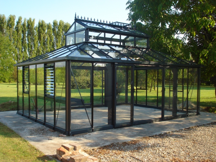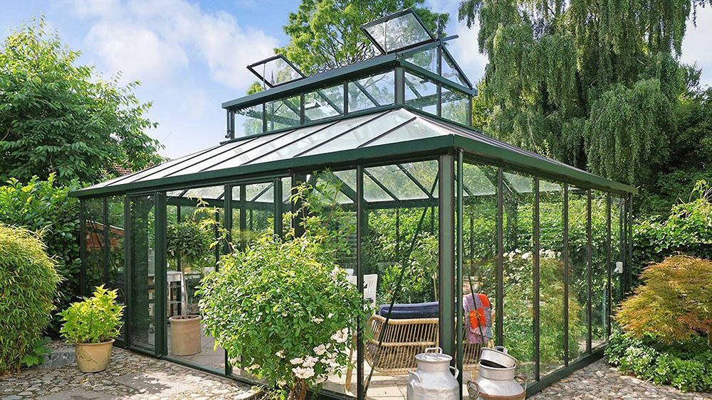 Crafted in Belgium by Janssens, it features a sturdy aluminum frame and full-length tempered glass for reliable strength and year-round weather protection. The open interior provides space for plants, potting, and relaxation. Adjustable door and window placement allows you to customize the layout.