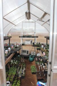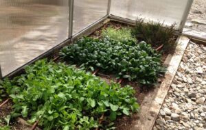 Between the ground-planted crops and indoor-started plants being hardened off, the greenhouse has been continuously busy and productive ever since. COMPLETELY WITHOUT SUPPLEMENTAL HEAT, by mid-April we began harvesting loads of spinach, lettuce, green onions, radishes and bok choy until we began replacing these early veggies with heat lovers like tomatoes, peppers and muskmelon.There were a few nights early on where we had a borderline frost but no damage on the cool climate plants and now (June 7th) the trick will be to prevent overheating.