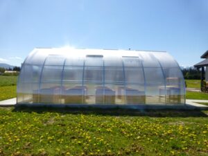 The Hoklartherm Riga greenhouse provides ample room for plants and projects while maintaining the strength and efficiency that define its reputation for excellence. Crafted with a reinforced aluminum frame and high-quality 8- and 10 mm-thick twin-wall polycarbonate glazing, it offers superior insulation and protection from snow, hail, and wind. Stainless steel hardware resists corrosion, and the curved side walls naturally shed snow, ensuring stability and reliability through every season. The polycarbonate has been manufactured to contain UV protection.