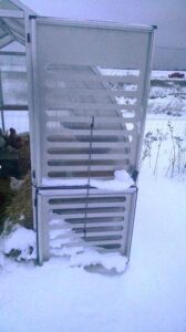 "Very pleased with our Riga V. Our Riga V is mounted on a stem wall. We grow vegetables year round in Northern New Mexico at 7800 ft. Retrofitted the doors for summer with screens to maintain temperatures. So great to have fresh tomatoes in the winter!"