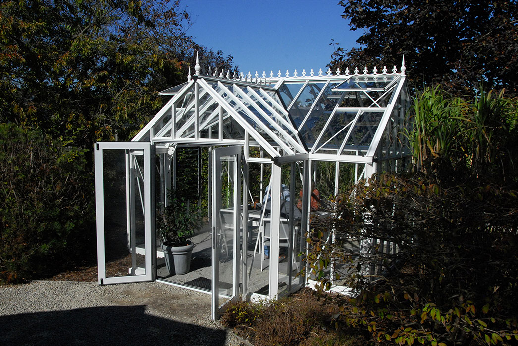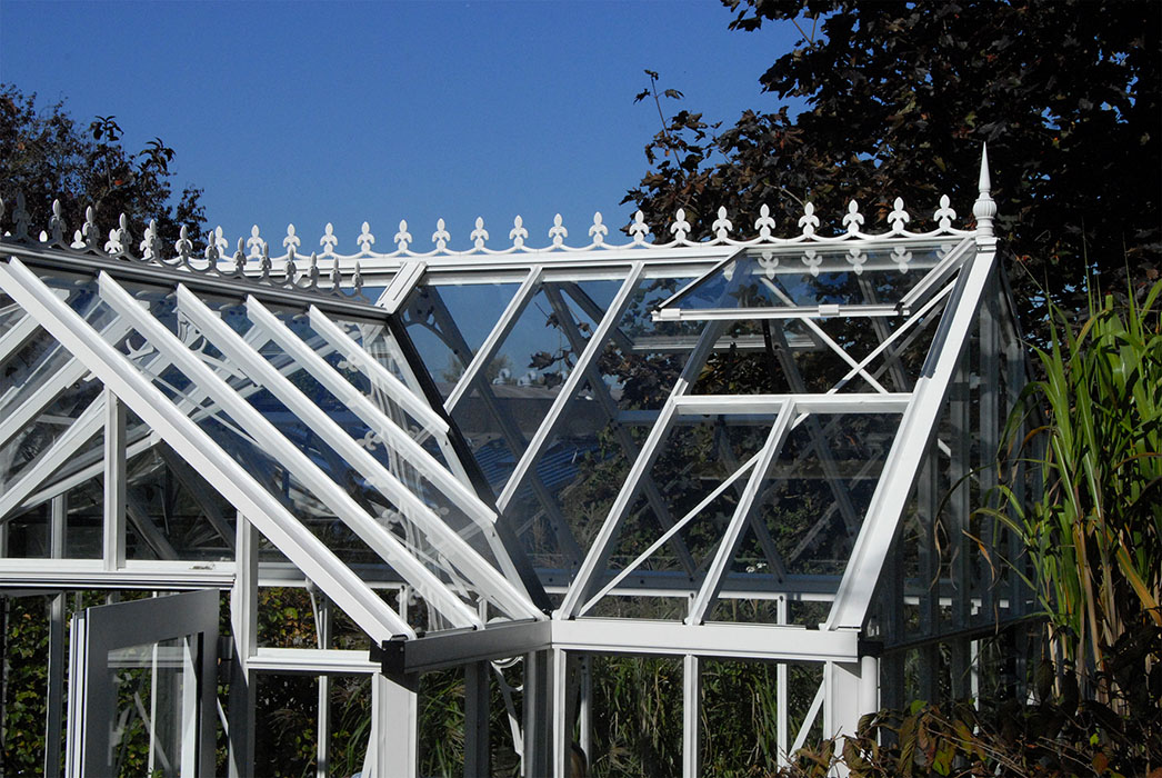 This T-shaped model combines meticulous Belgian engineering with a steep roofline and narrow glass panels to deliver both character and performance. A strong 17-gauge aluminum frame and 4 mm tempered glass bring robust protection for plants and structure alike. The layout allows flexible placement of doors and windows so that you can adapt the space to your garden’s workflow and aesthetics.