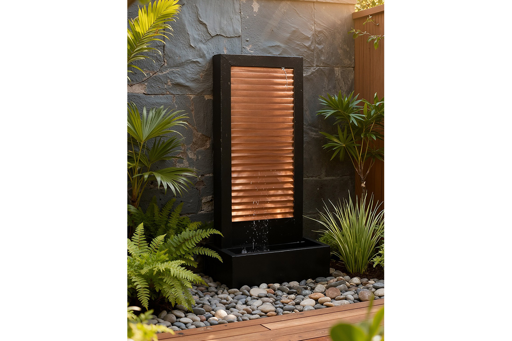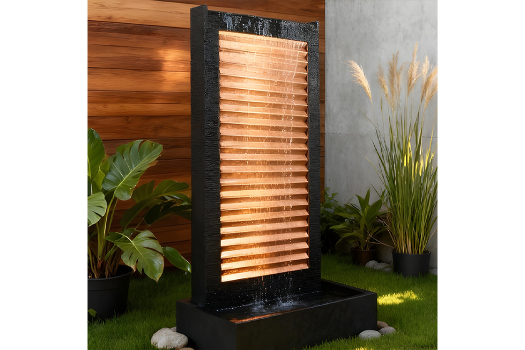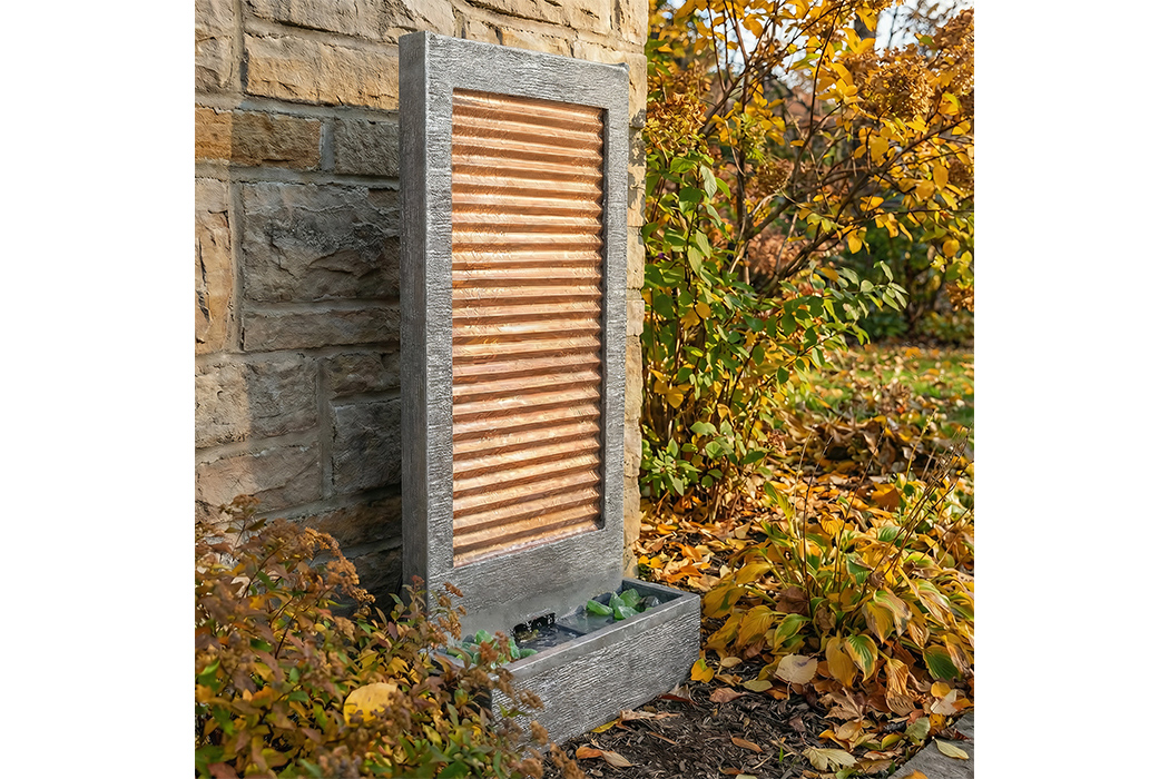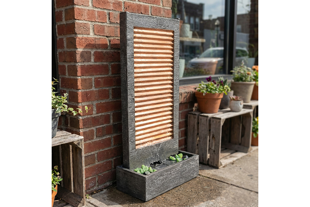 The Zig Zag outdoor water fountain brings architectural flair and soft movement to the landscape. The bold, angled profile catches light and shadow through the day while the cascading water adds tranquility and texture. With its narrow footprint, the design fits well in tight spaces or alongside seating areas where it can anchor the view without overwhelming it. The Rust finish offers warmth and an aged appeal, while the Charcoal finish offers crisp contrast and modern styling. Engineered for durability and longevity, this fountain becomes a lasting element of your outdoor environment.